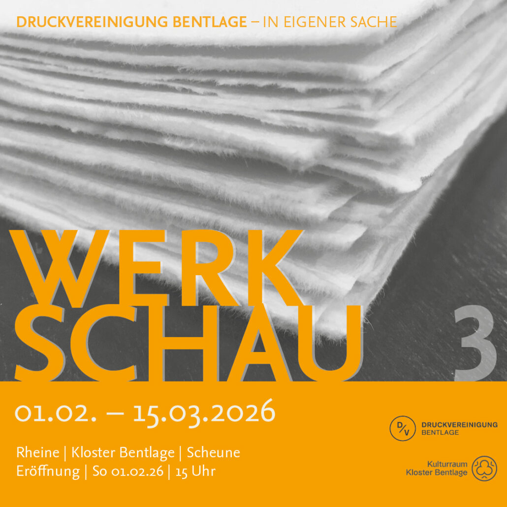 Seit mehr als 25 JAHREN, nämlich seit 1998, gibt es die Druckvereinigung Bentlage. Wir haben uns die Förderung der Druckgrafik und Buchkunst sowie die Vermittlung traditioneller als auch experimenteller Drucktechniken zur Aufgabe gemacht und betreiben auf dem Gelände des Klosters Bentlage in Rheine zwei gut ausgestattete Werkstätten.